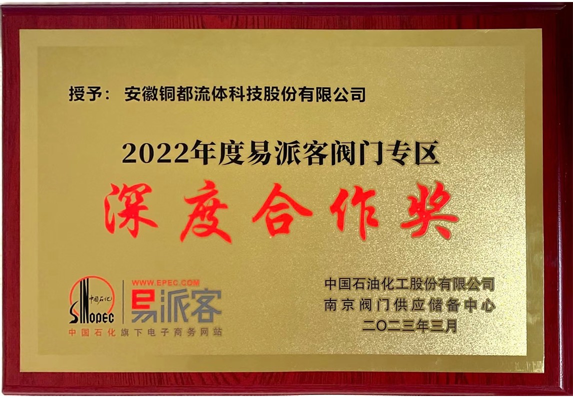 2022年度易派客閥門專區(qū)深度合作獎