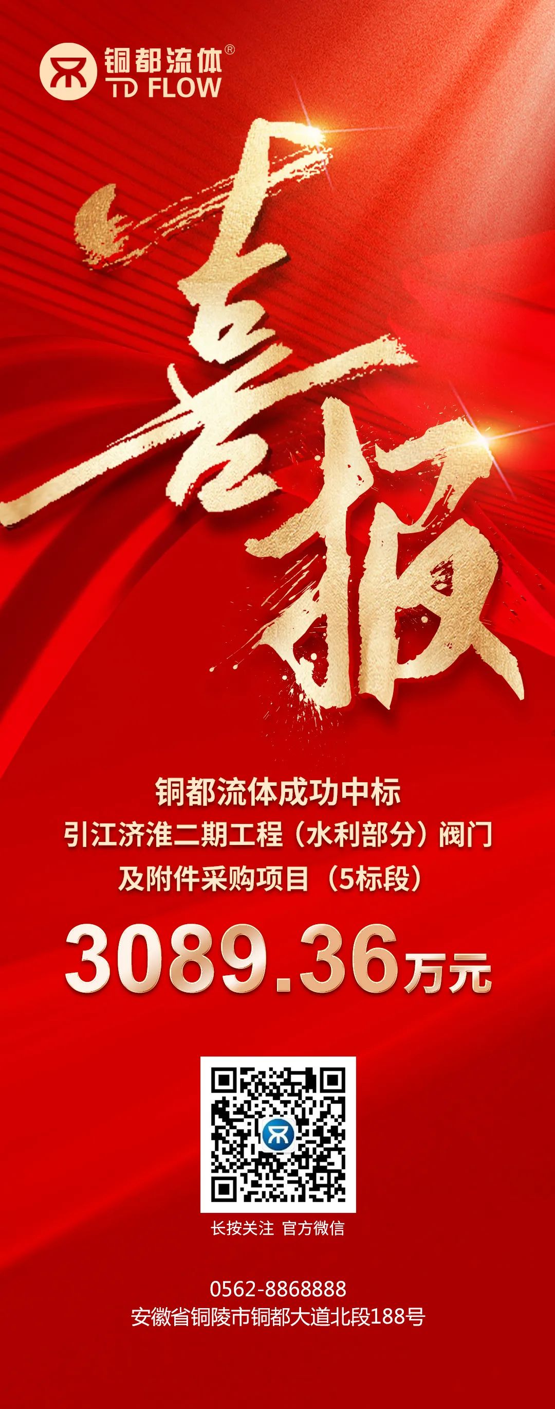 銅都流體成功中標(biāo)引江濟(jì)淮二期工程(水利部分)閥門(mén)及附件采購(gòu)項(xiàng)…
