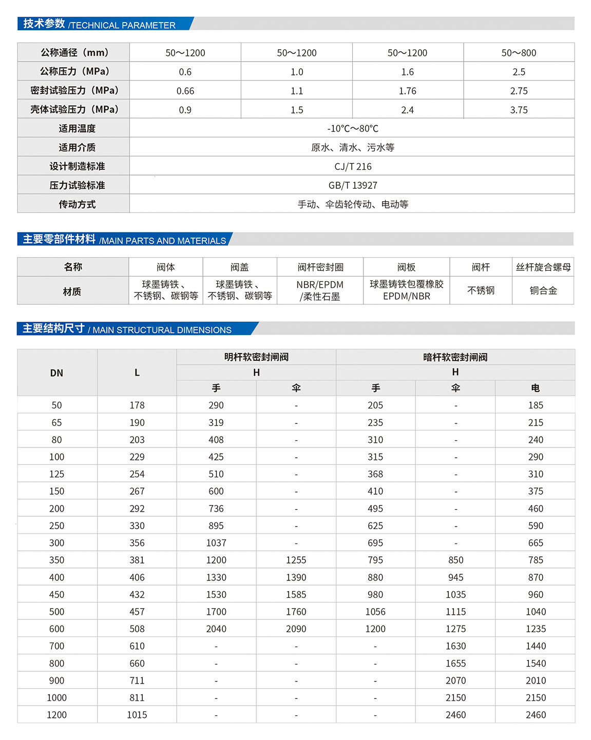 2、閥軸密封無泄漏。暗桿軟密封閘閥閥軸密封:采取三道“O”型密封圈,一道防塵密封圈??纱_保閥門操作靈活,且不會形成外漏。明桿軟密封閘閥閥軸密封采用柔性石墨密封,潤滑性好,摩擦力小,密封嚴密,不漏水。