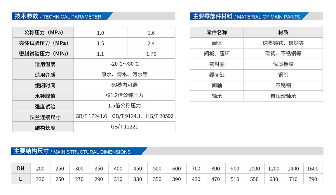 蝶形緩閉止回閥主要用于凈水、原水、污水、海水等介質(zhì)的供、排水管道上,安裝在水泵出口處,用以截斷介質(zhì)的回流,消除水錘,保護管道、水泵的安全運行。其主要特點:體形小、重量輕、結(jié)構(gòu)長度只有旋啟式止回閥的三分之一左右。帶外置阻尼油缸,緩閉性能優(yōu)良,不受管道中介質(zhì)的影響,閥瓣先速關(guān)后緩閉,可防止破環(huán)性水錘。橡膠軟密封,結(jié)構(gòu)密封性能好,耐磨損,使用壽命長。橡膠緩沖,運行平穩(wěn),無震動及噪音,比老式止回閥流阻小,有明顯的節(jié)能效果。