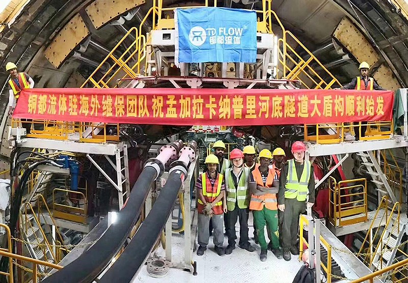 銅都流體駐海外維保團隊祝孟加拉卡納普里河底隧道大盾構(gòu)順利始發(fā)